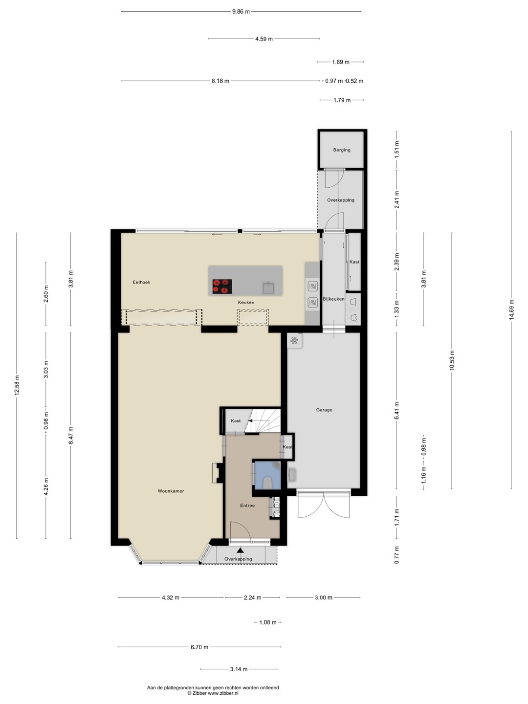 De bijkeuken: De bijkeuken heeft een vaste kastenwand, de aansluitingen voor wasmachine en droger en toegangsdeuren tot de tuin, respectievelijk de garage. De gehele begane grond, met uitzondering van de garage, is voorzien van vloerverwarming.