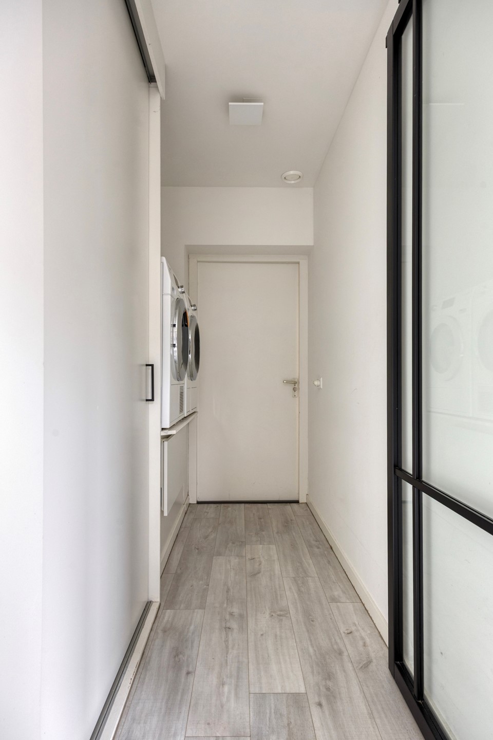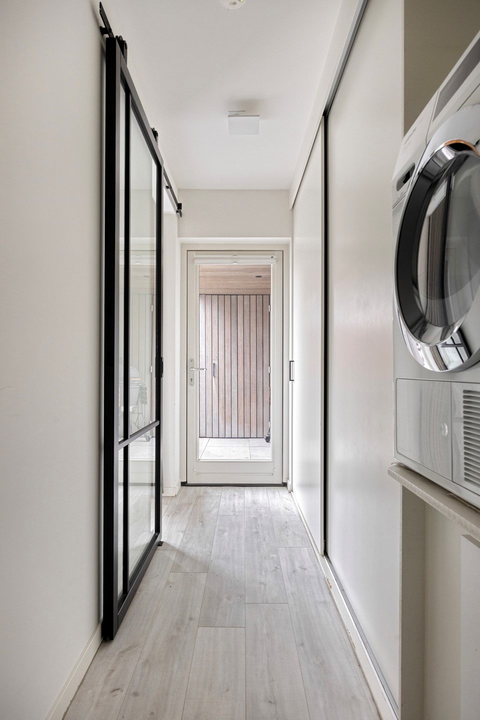 Via de keuken is er via een houten schuifdeur met beglazing toegang tot de bijkeuken.