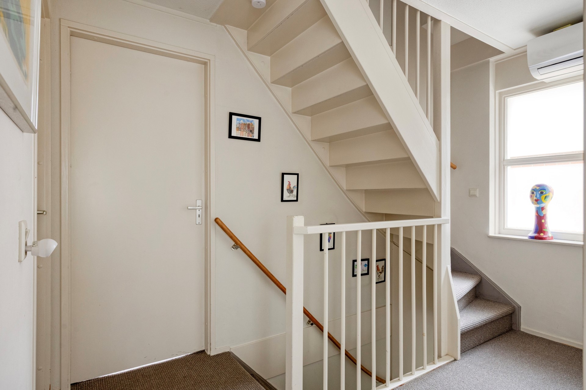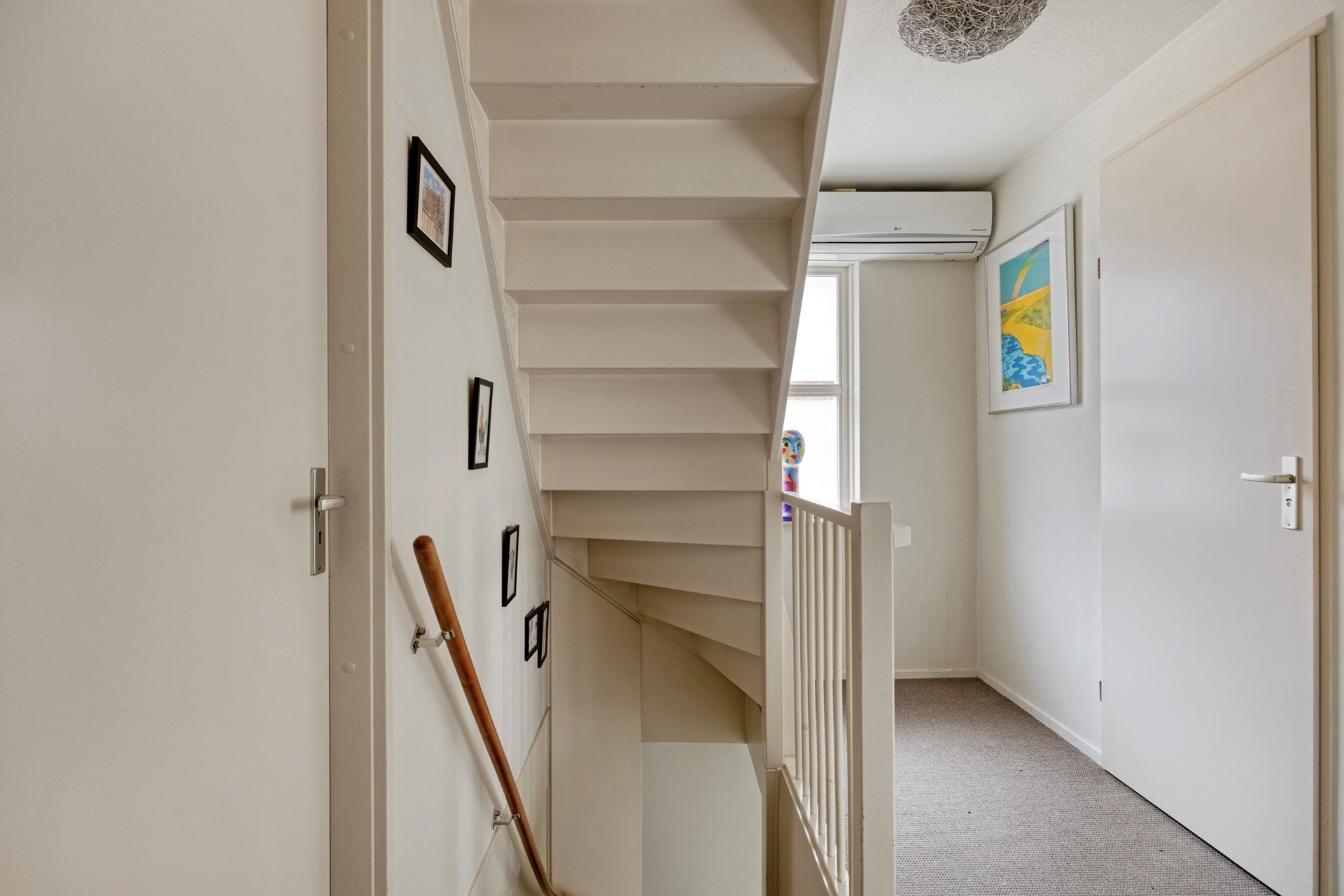 Via de overloop met groot raam (waardoor ook hier veel daglichttoetreding) en aircosplitunit is er toegang tot beide slaapkamers, de badkamer, de walk-incloset en de vaste trap naar de tweede verdieping.
