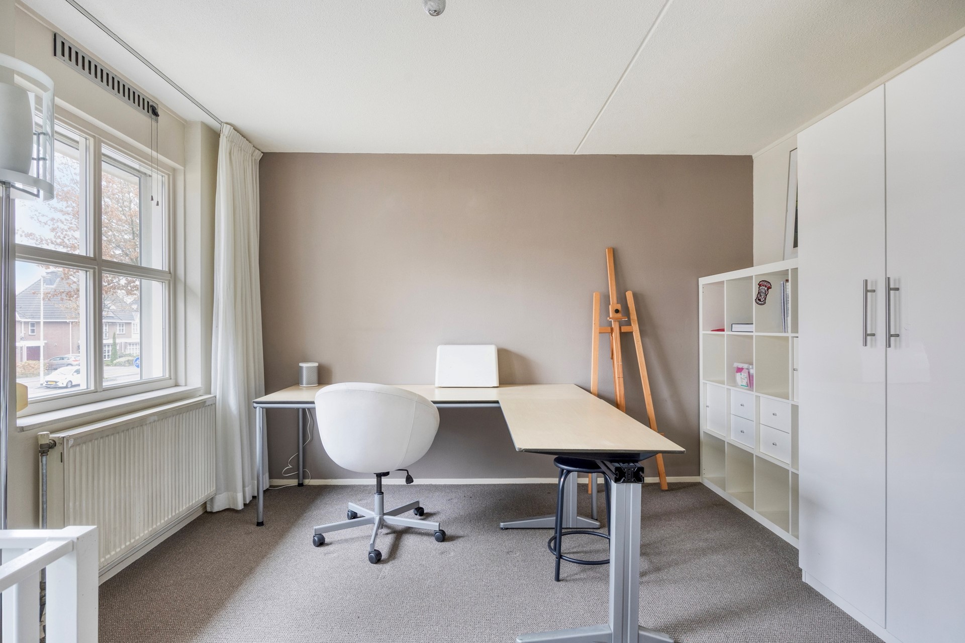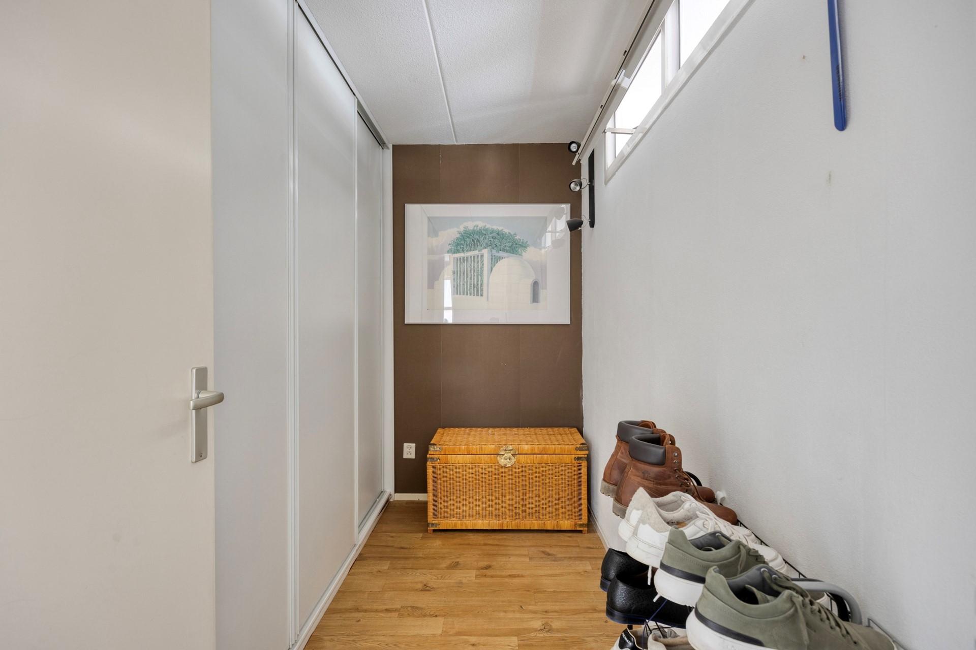 Walk-in closet: In de walk-in closet zit een lange inbouwkastenwand en aan de grote slaapkamerzijde zitten twee zg. ‘bovenlicht’ uitzetramen voor de ventilatie.